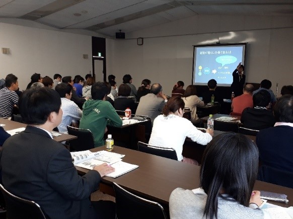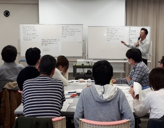 フォローアップ研修の座学では、24Hシートを活用して意義や効果などを学び、ケアの理念や視点の重要性を理解していきます。「実際に導入し活用する事で施設の経営や運営にも効果が出てくる事を理解すること」、「その後の実践するための具体的な方法について、経験談を踏まえグループワークで討議すること」がとても大切です。ただ聞くだけではなく、「声に出して聞き取りをする」「収集をしてみる」「記入してみる」など、全員参加型のワーク方式で実施しているので、受講者からは、とても理解しやすかったとの声も多く頂きました。