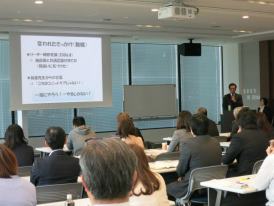 本日、平成25年度新規ユニットリーダー研修実地研修施設募集説明会を開催し、多くの施設の皆様にご参加いただきました。当センターのユニットリーダー研修等の事業内容や施設現地調査の応募から選定の一連の流れについてご説明をさせていただき、ユニットケアの実践の確認と調査の視点についての説明の際には、細かな質問を多くいただきました。また、熱心にメモを取られるなど、項目毎に整理をされていました。本日はご出席をいただきまことにありがとうございました。