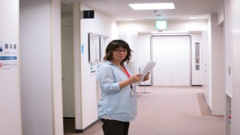 毎回、実地研修施設の方が研修を陰で支えてくださっており、今回の研修で主任施設をしてくださいました特別養護老人ホームちょうふ花園の岡村紀子さんをご紹介させて頂きます。この場面は岡村さんが各部屋を回って、指導者の皆さん、実地研修施設の職員の皆さんのお弁当やお茶の手配をしてくださっているところです。初日の受講生の皆さんの受付から様々な対応、また、講師およびスタッフの皆さんへの気配りまで、いつも笑顔でてきぱきと対応してくださいました。岡村さんをはじめ、ご協力いただいた実地研修施設の皆様、本当にありがとうございました。