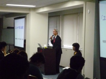 初日の講義では、やすらぎ荘の佃施設長が施設の概要・理念・ユニットケアの導入の過程をお話ししてくださいました。